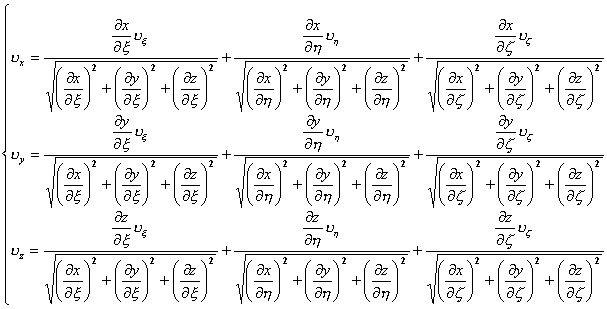 [球面坐标系与直角坐标系的互换] 由球面坐标系到直角坐标系的变换公式