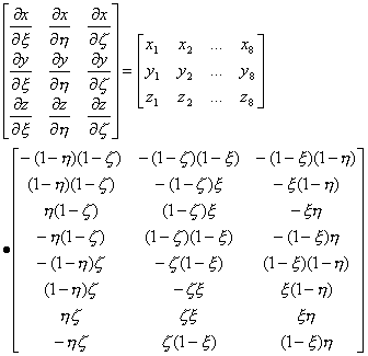 从上式看出变换矩阵各行关于ξ,η,ζ的二次项系数是相同的,记