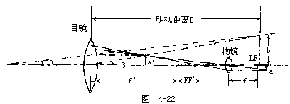 【牛顿公式】 设X1表示物体与第一焦点的距离,而X2表示光像与第二焦点的距离,由图4-14可以看出,△CC′F2~△MOF2和△M′OF1~△AA′F1放大率