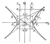 焦点半径     r1, r2       (双曲线上一点(x, y)到焦点的距离,MF1, MF2)
