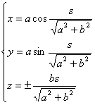 称为螺旋角,式中对右螺旋线取正号,对左螺旋线取负号,如果以弧长s为参数,其方程为