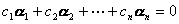 [线性相关与线性无关]  F上的线性空间V中一组有限个矢量,如果对,仅当时等式