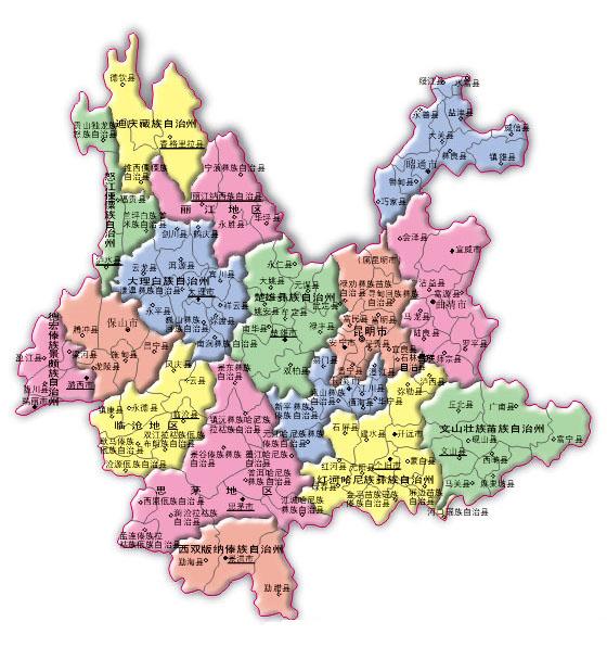 The entire province area more than 380,000 square kilometers, govern 2 local, 8 autonomous prefectures, 6 places levels cities, 10 county level cities, 10 municipal districts, 80 counties, 29 autonomous counties, 597 towns, 942 townships (175 ethnic townships), 43 subdistrict offices, the provincial capital is Kunming.