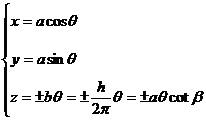 In the formula , is the angular velocity, h is called the pitch, and is called the helix angle. In the formula, the positive sign is taken for the right helix and the negative sign for the left helix. If the arc length s is used as the parameter, the equation is:![]()