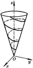 A curve whose intersecting angle with a conical surface generatrix is a fixed angle is called a conic helix (Fig. 7.20 ) , and its equation is