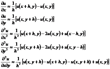 注意, 1°  式中的差商称为向后差商,而称为向前差商,称为中心差商.也可用向前差商或中心差商代替一阶偏导数.