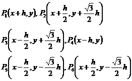 P0(x,y)为中心,它的周围6个邻近节点分别为: