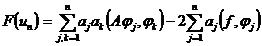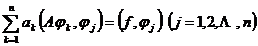 where a k is an undetermined constant, substitute u n into u in the equation Au=f , and take the inner product of both ends with j ( j =1,2, , n ) to obtain n algebraic equations of a k