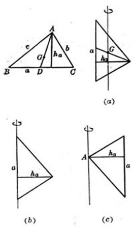 ( c ) the axis of rotation passes through a vertex A of the triangle and is parallel to side a ( figure ( c ))