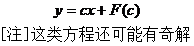 Eliminate c from , and get the c- discriminant curve y=x sum . Substitute it into the original equation directly, we know that y=x is not the solution of the known equation, so it is not a singular solution, but odd solution .