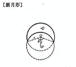 r is the radius , d is the diameter , l is the distance from the center of the circle , , is the opening angle of the crescent , and is the number of radians