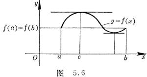 [ Lore's Theorem ]   If (i) the function f ( x ) is defined on the closed interval [ a , b ] and is continuous , (ii) there is a finite derivative in the open interval ( a , b ) , and (iii) there is a finite derivative in the interval ( a , b ) The function values ​​are equal at both ends of : f ( a ) = f ( b ). Then there is at least a point c between a and b , so that =0. That is, the curve y = f ( x ) is at point ( c , The tangent at f ( c )) is horizontal ( Fig. 5.6).