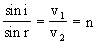 【折射率】 表示在两种(各向同性)媒质中光速比值的物理量。光从第一媒质进入第二媒质时(除垂直入射外),任一入射角的正弦和折射角的正弦之比对于折射率一定的两种媒质是一个常数。这常数称为“第二媒质对第一媒质的相对折射率”。(n12),并等于第一媒质中的