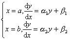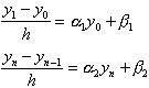 式中α1,α2,β1,β2是已知常数.这时,上面差分方程组中相应于边界条件的那两个方程要换成: