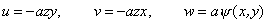 [柱体的扭转]   同圆柱扭转一样,假定,体力与侧面的面力不计,只在两端施加力偶矩M,其扭矩的位移分量可写成