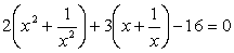 偶数次(n=2k)倒数方程两边除以xk,再令z=x+,则原方程可化为zk次方程,解此方程,得z的值,然后对应的x值可由二次方程