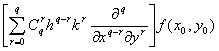 [泰勒公式] 假定在某一点(x0,y0)的邻域D内二元函数f(x,y)有直到n+1阶为止的一切连续偏导数.分别给x及y以改变量h及k,使连结点(x0,y0)及(x0+h,y0+k)的直线段不越出D外,那末f (x,y)在D内可表成形式:
