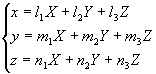 式中x, y, z为旧坐标;X, Y, Z为新坐标;g, h, k为新坐标系原点O¢ 在旧坐标系内的坐标
