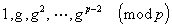 [模m的原根] 设m为一自然数,若有一数g存在,使得