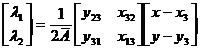 Since P is on the plane , there are only two independent coordinate variables , which are assumed to be x and y ; similarly , there are only two independent area coordinates , which are assumed to be taken . From the above two equations can be obtained![]()