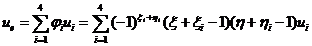is obviously desirable for the unit square , , which is bilinear , that is, linear for either ξ or η . Since the local coordinates of the vertices are 1 or 0 , the type function can also be written uniformly as![]()