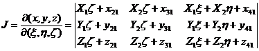 2° In the element analysis, the differential and integral operations of ( x , y , z ) are usually carried out by using local coordinates , which requires the use of transformation matrix and Jacobian formula J . Except for the hexahedral element , its expression is relatively simple . If the shape of the hexahedron is simple , for example, a series of regular hexahedrons parallel to the rectangular coordinates are used as the unit , then the coordinate transformation is degenerated to linear, and the transformation matrix is also very simple.