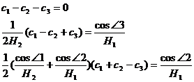 Considering the restriction of the remaining two sides = 0 , = 0 , the other two equations can be obtained in the same way . After simplification , the three equations can be written in the following form