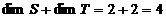 [ Second dimension theorem ]   Let S and T be two subspaces of linear space V , then